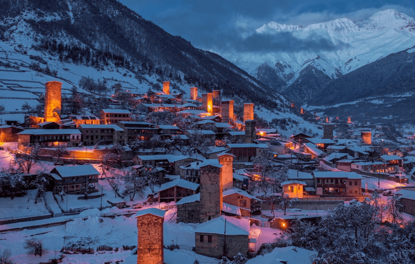 منتجع ميكهتبيلي (Mestia): يقع في منطقة سفانيتي بجبال القوقاز الجورجية، ويقدم فرصًا رائعة للتزلج والاستمتاع بالمناظر الطبيعية الخلابة.